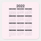 2022 Yearly Calendar on Pale Pink Square Sticker