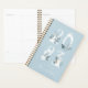 This cute 2023 planner features a white bunnies with winter floral and foliage on a blue background. The reverse side features a carolina blue background with botanical patterns. Personalise it for your needs.