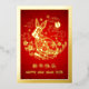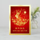 Bold, graphic real gold foil “Happy New Year” typography in both Chinese and English and a stunning visual of an elegant real gold foil rabbit with flowers, clouds and stars, overlay a traditional red circle pattern and real gold foil border on the front. On the back, a faux gold foil cloud and star visual, along with your personal message, overlay a red circle pattern background. Feel the warmth and joy of the holiday season whenever you send this stylish yet modern, personalised 2023 Chinese New Year of the Rabbit greeting card. Make sure someone special receives this greeting!