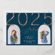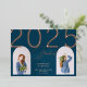 Modern girly glam real rose gold foil class of year bold typography and graduate script senior class high school college or university graduation navy blue invitation card with 2 custom pictures and elegant contemporary look.