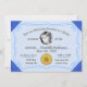These fun novelty graduation invites have a diploma | degree custom certificate look. In shades of blue, the diploma design is made to look like it's nestled in a holder | frame. It has a white spotted border and a light blue grid, along with a fake gold sticker that says, "Academic Excellence."