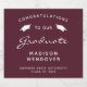 Celebrate your graduate's milestone in style with these custom graduation sparkling wine bottle labels, featuring the words "Congratulations to our Graduate" in white text on a burgundy background, decorated by a pair of white mortar board caps. The word "Graduate" appears in a graceful handwriting-style script. Personalise it with the grad's name, school, and year of graduation.