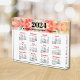 A horizontal clear acrylic block features a 2024 year-at-a-glance calendar with the months and your business information over a colourful kaleidoscope print at the top. Perfect for your desk or give to customers and clients.