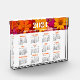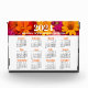 A horizontal clear acrylic block features a 2024 year-at-a-glance calendar with the months and your business information over a colourful photo of orange, pink and yellow flowers print at the top. Perfect for your desk or give to customers and clients.
