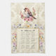 Pretty sparrow 2024 calendar towel with pastel wildflowers. Tan damask background.