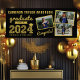 2024 Gold Sketch Three Photo Collage Grad Party Banner