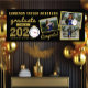 Gold Sketch Bold Typography On Black, Graduate Class of 2024, Modern Three Multi Photo Collage Graduation Banner.