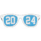 2024 Graduation Party shades for an awesome high school senior graduate bash. 20 written on one side 24 on the other of these cool blue party glasses with varsity letter numbers. Cute sunglasses for partying seniors.