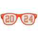 2024 Graduation Party shades in orange for an awesome high school senior graduate bash. 20 written on one side 24 on the other of these cool party glasses with varsity letter numbers. Cute sunglasses for partying seniors.