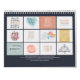 This Homeschool Life Calendar features typography by Dawn Earles and quotes by Charlotte Mason, John Holt, Mahatma Gandhi, and more! Hang up in the homeschool room as functional decor and get a new quote to inspire you each month. The monthly artwork combines hand-lettered duo's, soft muted colours in navy, gold, peachy pink, and cream, and a few touches of watercolor.