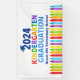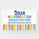 This cute customisable 2024 kindergarten graduation banner features a cool grad cap above colourful writing and a row of crayons in rainbow. Cool kindergartner graduate sign in fun colours for the last day of elementary school with your school name in blue. Congratulations to our kinder graduates!