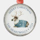 This holiday ornament features a sweet watercolor reindeer in a blue and white sweater. The words "Merry Christmas" appear in blue serif font, with your family's name and the year below.