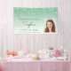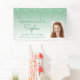 Celebrate her graduation from high school or college with this chic, glamourous photo banner, featuring a sparkly green faux glitter drip border and ombre background. Easily replace the sample image with a photo of the graduate. Personalise it with her name in green handwriting script, with the class year and school name below in sans serif font.