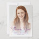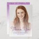 Trendy modern graduation thank-you card featuring a custom vertical photo. The words "Thank You" appear in purple handwriting script overlay, with the graduate's name and year of graduation below in sans serif font. Easily replace the sample image with your own graduate's photo. A white gradient screen helps ensure the text pops. The reverse side features a purple dripping faux glitter border on an ombre background.Customise the text with your own thank-you note, or delete it to provide room for individual handwritten messages.
