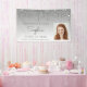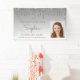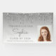 Celebrate her graduation from high school or college with this chic, glamourous photo banner, featuring a sparkly silver faux glitter drip border and ombre background. Easily replace the sample image with a photo of the graduate. Personalise it with her name in grey handwriting script, with the class year and school name below in sans serif font.