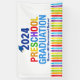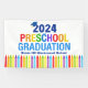 This fun 2024 preschool graduation banner features a cool grad cap above colourful writing and a row of crayons in rainbow. Cute customisable Pre-K graduate congratulations decor in fun colours for your preschoolers. Congratulations to our PreK grads!
