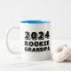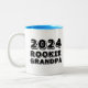 Rookie Grandpa 2024 dated mug with black text, great for the first time grandfather of a baby born in 2024.