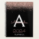 2024 Rose Gold - Blush Pink Black Glitter Monogram Planner