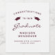 Celebrate your graduate's milestone in style with these custom graduation wine bottle labels, featuring the words "Congratulations to our Graduate" in burgundy text on a white background, decorated by a pair of burgundy mortar board caps. The word "Graduate" appears in a graceful handwriting-style script. Personalise it with the grad's name, school, and year of graduation.