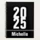 2025 is in white text on a black planner. A line of white display text is at the bottom. You can edit the text to show a name or a custom message.