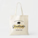 Custom graduation gift bag featuring a graduate cap, 2025 in faux gold, school name, students name, and the word graduate in a script font.