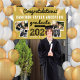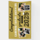 Black Sketch Modern Typography On Gold, Congratulations To Graduate Class of 2024/2025, White Mortar Board / Graduation Cap, Four Multi Photo Collage Graduation Party Banner.
