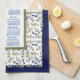 2025 Calendar Blueberry Stem Leaves White Navy Tea kitchen towel