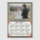 This 2025 year monthly calendar fridge magnet shows the days of the week for each month in classy, professional-looking black and gold. It's easy to read while also being trendy and cute. The design includes a black-and-white stripe background with flower embellishments in pink, red and yellow. There are hearts next to the cursive month names and a thin gold-coloured border. Easily add your horizontal photo and a short caption. Please note: if you want to make more detailed adjustments, "Customise." All elements can be moved, resized or deleted. This is a pretty yearly calendar magnet to help you conquer the new year. Always know what date it is and check the days of the week with this stylish calendar.