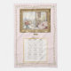 2025 Calendar towel tea towel - Framed scene of Paris from inside an apartment - decorative kitchen towel. Pink damask pattern background. The text "Paris" can be changed to any personalised message you like. Thanks for looking.