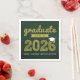 Bold White 'Graduate' Typography Sketch/Scribbles With A Graduation Cap / Mortarboard Accent On Retro Dark Green Chalkboard, Class Of 2024/2025 Graduation Party Paper Napkin.