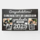 White Sketch On Vintage Black Chalkboard, Congratulations To Graduate Class of 2024/2025, White Mortarboard / Graduation Cap, Four Multi Photo Collage Graduation Party Banner.