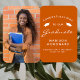 Help your graduation guests keep cool during the ceremony or party with these custom photo graduation hand fans, featuring the words "Congratulations to our Graduate" in white text on a burnt orange background. The word "Graduate" appears in a graceful handwriting-style script. A pair of white mortar board caps decorate the top portion of the fan. Personalise one side with your grad's name, school, and year of graduation. Easily replace the sample image on the other side with a photo of your grad.