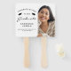Help your graduation guests keep cool during the ceremony or party with these custom photo graduation hand fans, featuring the words "Congratulations to our Graduate" in black text on a white background. The word "Graduate" appears in a graceful handwriting-style script. A pair of black mortar board caps decorate the top portion of the fan. Personalise one side with your grad's name, school, and year of graduation. Easily replace the sample image on the other side with a photo of your grad.