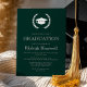 2025 Dark Green White Laurel Wreath Cap Grad Party Invitation