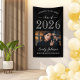 Custom "Congratulations" graduation party banner sign features a classic black, white, and silver grey colour scheme with a photo of the graduate. Personalise with the graduate's name and school. Colours can be customised to coordinate with other party or school colours.
