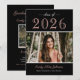 Announce your high school graduate in style with this simply elegant style photo graduation announcement card that features two senior photos of your beautiful grad with a classic black and blush pink / rose gold colour scheme - can be customised. The back of cards includes an invitation to a graduation party to celebrate the occasion.