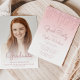 Trendy modern graduation invitation featuring a blush pink dripping faux glitter border on an ombre background. The words "Grad Party" and the name of the honoree appear in pink handwriting script, with the remaining text in sans serif font. The back displays a custom vertical photo, with the word "Graduate" in pink handwriting script overlay, and the graduate's name, school and year of graduation below in sans serif font. Easily replace the sample image with your own graduate's photo. A white gradient screen helps ensure the text pops.