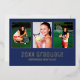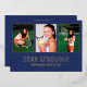 Make a statement with bold, modern, blue and gold graduation invitations. Replace the 3 sample photos with your own. Add the year and your grad's name to the gold foil geometric text below the photographs on the front which reads, "[YEAR] Graduate" with your grad's name below. Replace the gold coloured (not foil) sample text on the dark blue back of the invite for your graduate and party. Personalise it for any graduate: high school, college, graduate school, law school, medical school, trade school. If you have trouble with your photos' placement or sizing, please click the "Customise" button and use the design tool to enlarge/shrink or move it.
