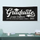 Graduation party banner feature a simple and stylish typography design with scholarly script "Graduate" wording and a grad cap with tassel accent. Personalise with your graduate's name, class year, and high school. Note, the black and white colours can be changed to match school or party colours.