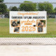 Orange Modern Bold Sketch Typography On White, Congratulations To Graduate Class of 2024/2025, Black Mortar Board / Graduation Cap, Four Multi Photo Collage Graduation Party Banner.