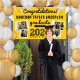 Black Sketch Modern Typography On Bright Yellow, Congratulations To Graduate Class of 2024/2025, Black Mortarboard / Graduation Cap, Four Multi Photo Collage Graduation Party Banner.