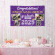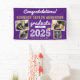 White Sketch On Purple, Congratulations To Graduate Class of 20242025, Gold Mortarboard / Graduation Cap, Four Multi Photo Collage Graduation Party Banner.