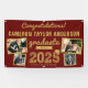 Any colour - Gold Modern Bold Sketch Typography On Burgundy Dark Red, Congratulations To Graduate Class of 2024/2025, Gold Mortarboard / Graduation Cap, Four Multi Photo Collage Graduation Party Banner.
