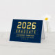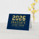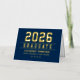 Elegant and modern custom gold foil graduation thank you note cards can be personalised with the graduate's name and school. Navy blue background colour can be modified. Customise to add a custom thank you message or write a handwritten note inside the card.