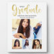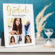 Simply stylish graduation plaque sign with easel features "2025 Graduate" in a trendy gold calligraphy script with a modern photo collage of four (4) senior portrait pictures of the grad.