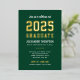 Announce your high school graduate in style with this real gold foil graduation announcement and party invitation. Two-sided card features a simple and masculine design with sports jersey inspired lettering, perfect for your all-star student and varsity athlete. Dark green, gold, and white colours. Space to include a senior photo of the graduate is included on the back.