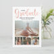 Simply stylish graduation announcement card and party invitation features "Graduate" in a trendy calligraphy script with a modern photo collage of four (4) photos of the grad. Two-sided card design includes "Let's Celebrate" graduation party wording and details on the back. Classic black and white design with rose gold / blush pink coloured accents.