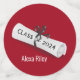 Class of 2025 white diploma with black ribbon and bow on red and white background.