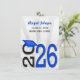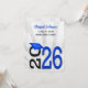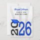 2025 graduation invitation in blue and black school colours on soft silver sunburst design.