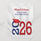 2025 graduation invitation in blue and red school colours on soft silver sunburst design.